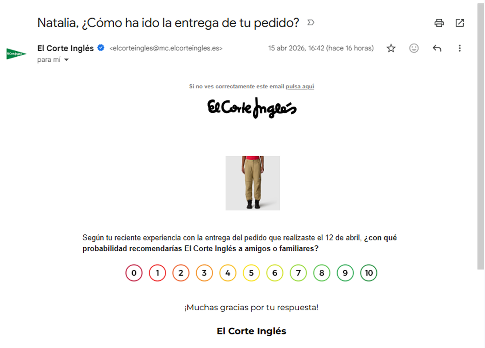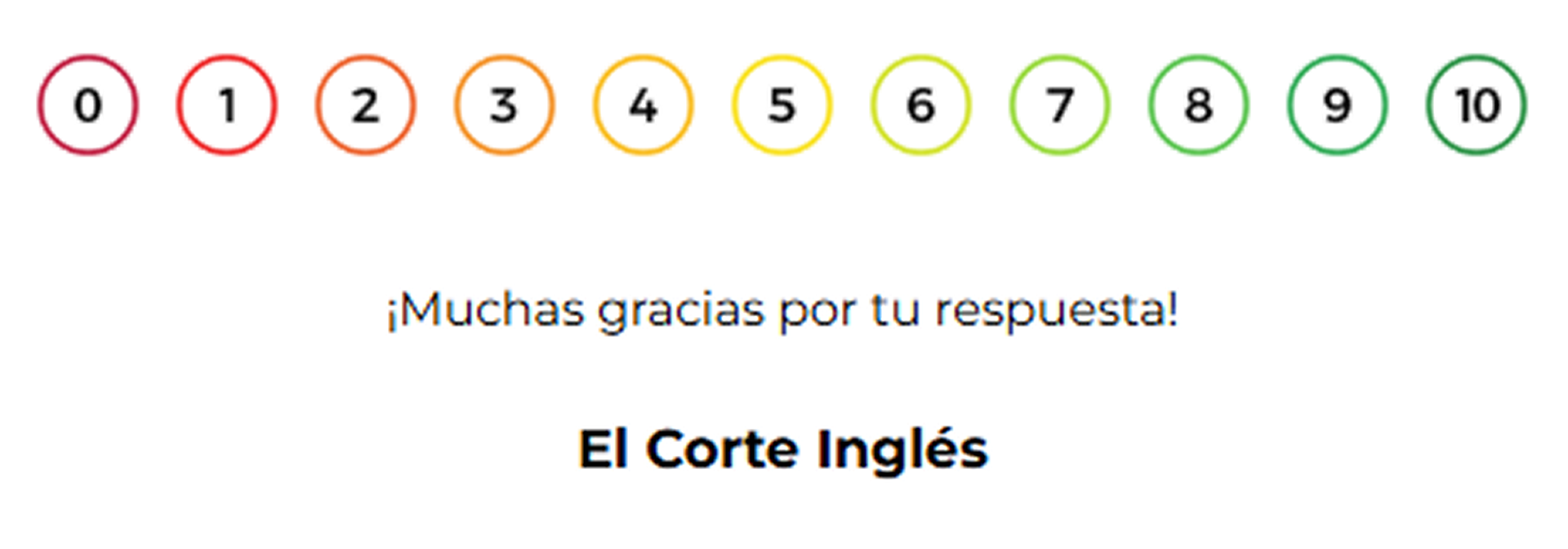 Me llegó esta encuesta de El Corte Inglés y, aunque usan los mismos colores, la sensación es totalmente distinta. En lugar de esos bloques agrupados de color, usan un degradado suave, número a número.
